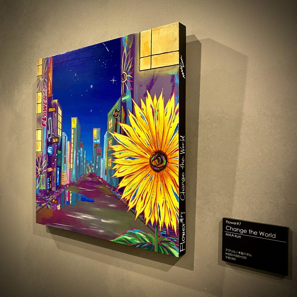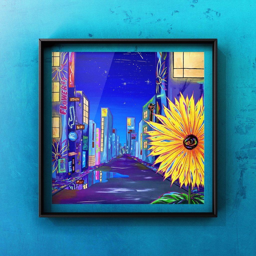 普段見慣れた街並みの中に花を咲かせました。一輪の花がきっかけとなって景色に彩りが満ちていく様子を切り取った一枚です。世界を変えるきっかけは案外身近に咲いているのかもしれません。