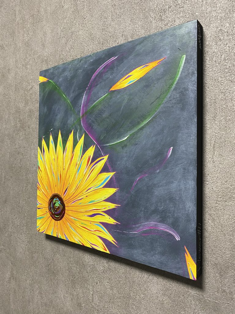 Wind Flower♯11 Title :Flower♯11 Wind(2024) Artist :MAA-kun Size :W300×H300×D20(mm) 【Concept】 This piece captures the moment when petals flutter in the wind, carrying a variety of emotions with them. 風を受けて様々な感情とともに舞い散る花びらの瞬間を表現した一枚です。